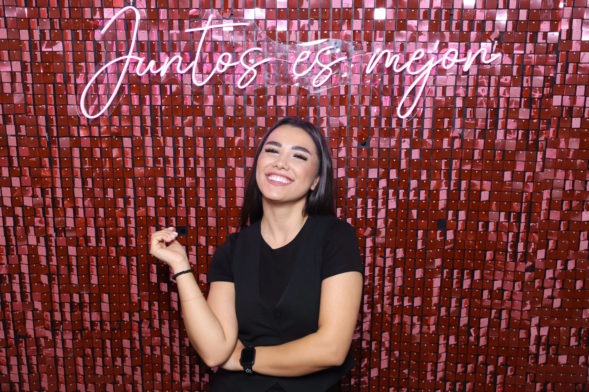 Photocalls de lentejuelas disponibles en varios colores: plateado, rosa y morado.